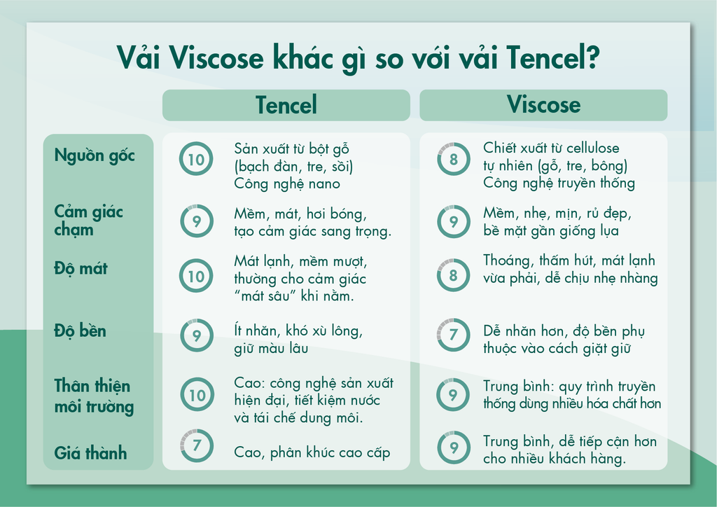 Thân thiện với môi trường: Vì có nguồn gốc tự nhiên, các sản phẩm từ vải Viscose có khả năng phân hủy sinh học, góp phần bảo vệ môi trường.
